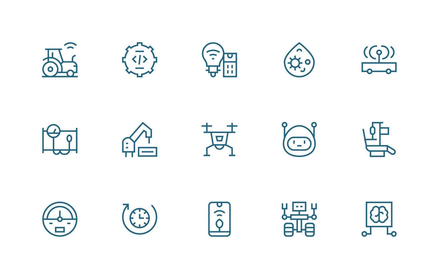 automatización conjunto con 15 regular línea íconos multi-estilo icono colección vector
