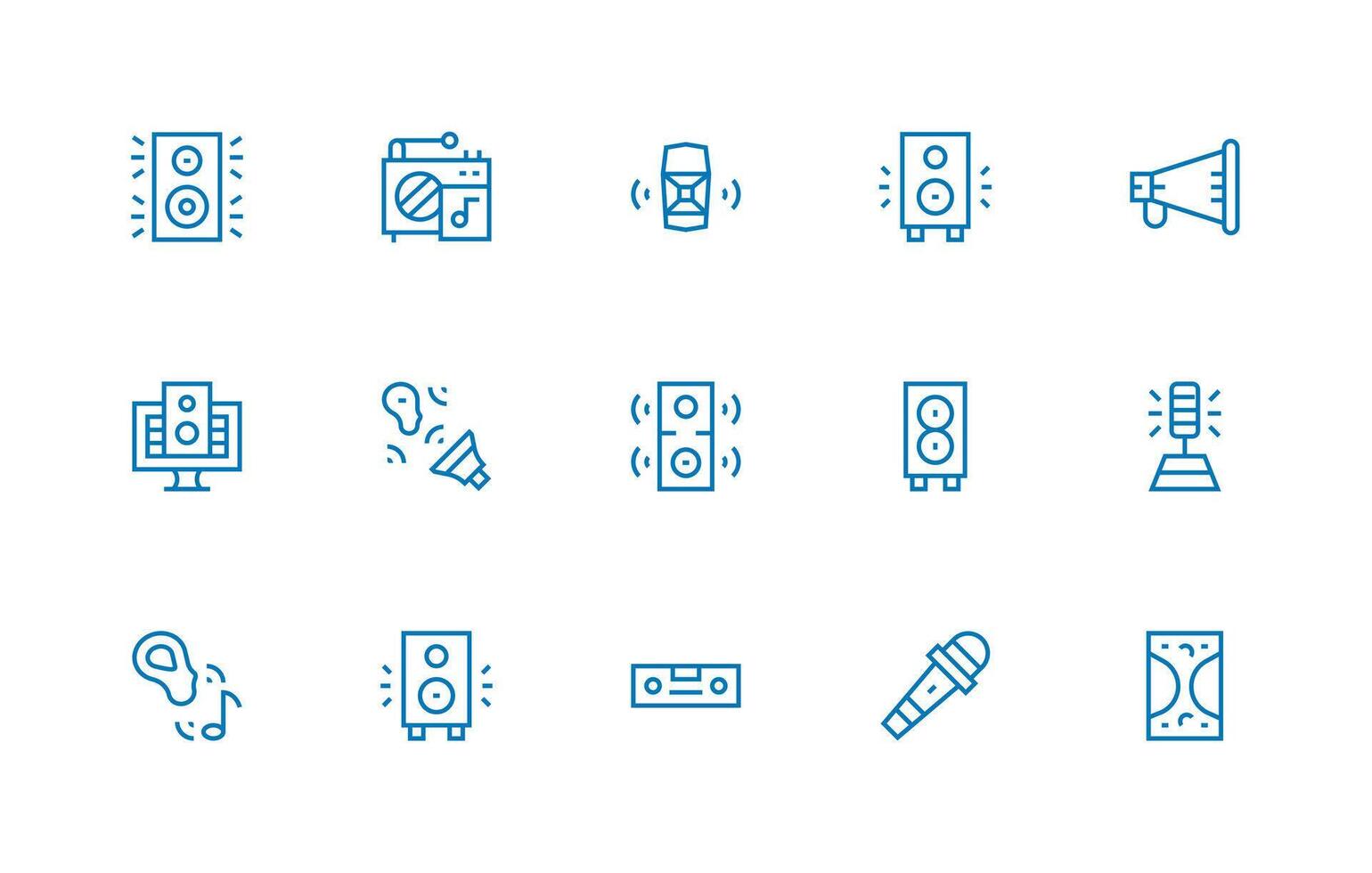 sonido sistema presentando 15 íconos en regular línea diseño completamente editable icono conjunto para web vector
