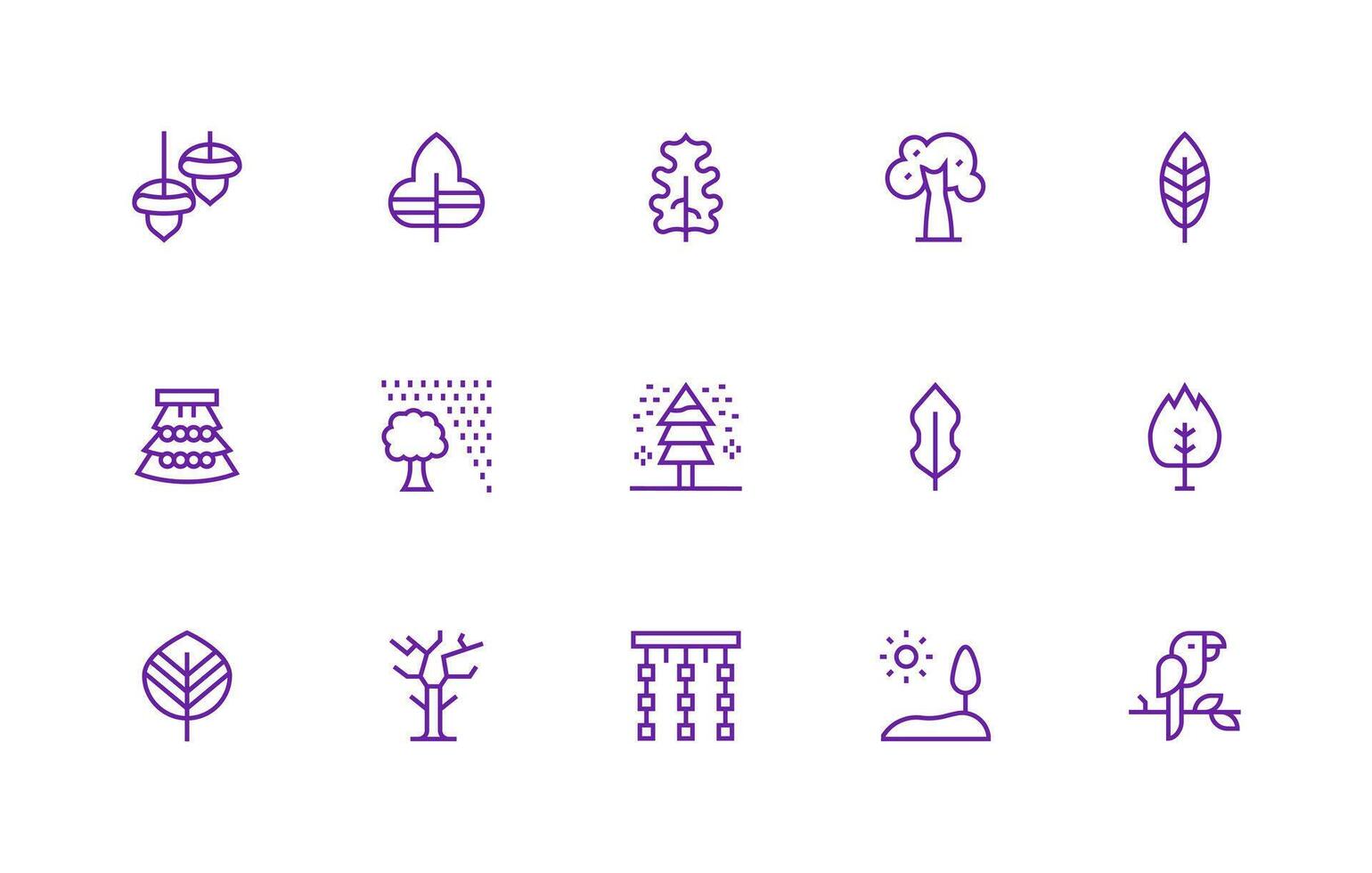 árbol diseño íconos presentando 15 en regular línea estilo ui icono conjunto vector