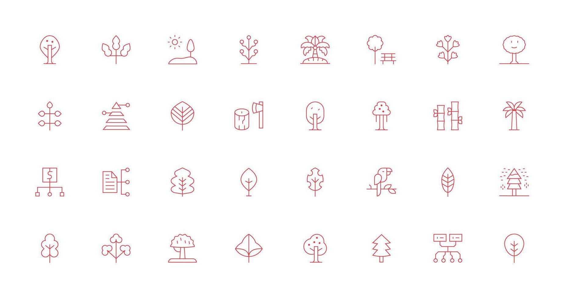 árbol presentando 32 íconos en Delgado línea diseño flexible icono sistema para web interfaces vector