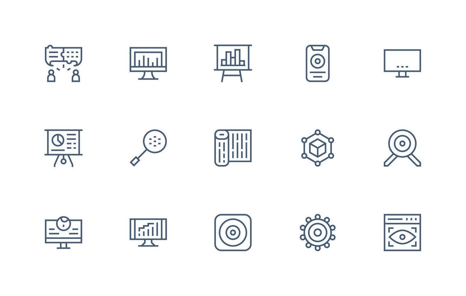regular línea estilo visualización íconos con 15 vectores web icono colección