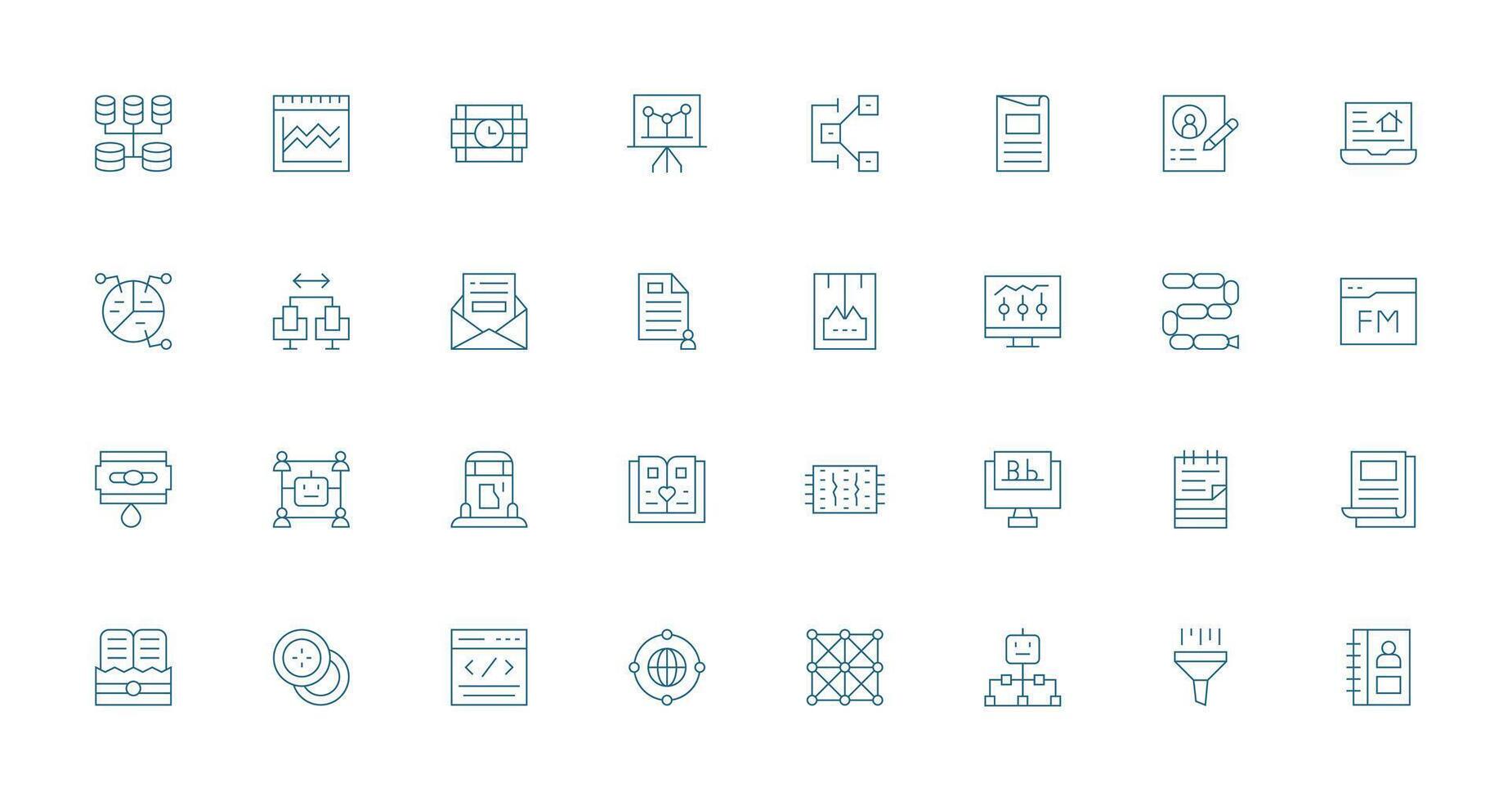 32 Delgado línea estilo íconos desde datos colección ui y ux enfocado icono colección vector