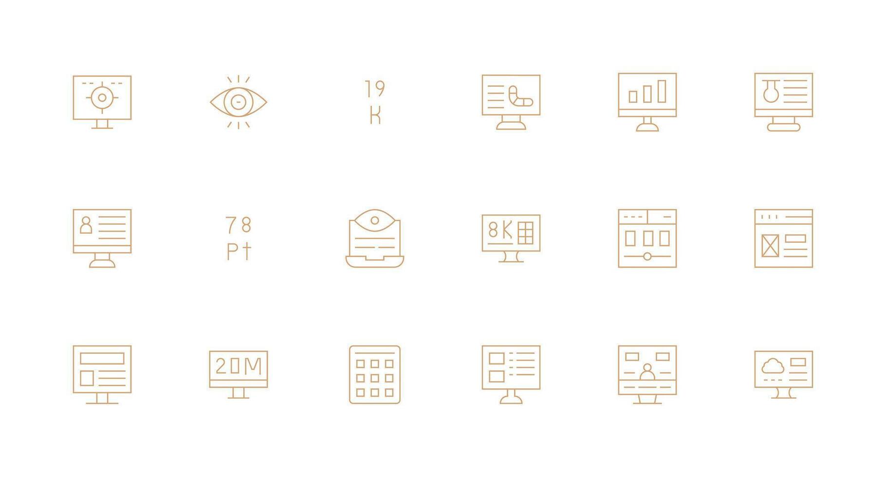 mínimo línea íconos desde datos monitor conjunto con 18 vectores web icono colección