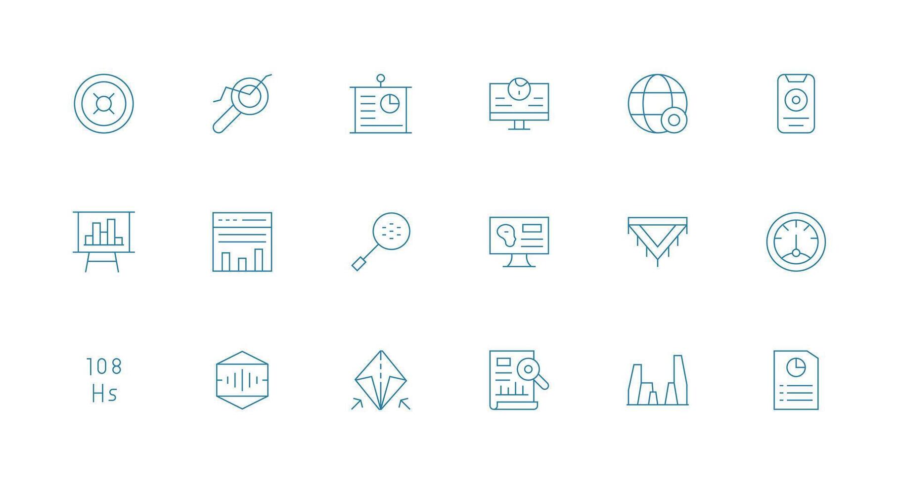 18 íconos para visualización en mínimo línea formato flexible icono sistema para web interfaces Vector Gratis