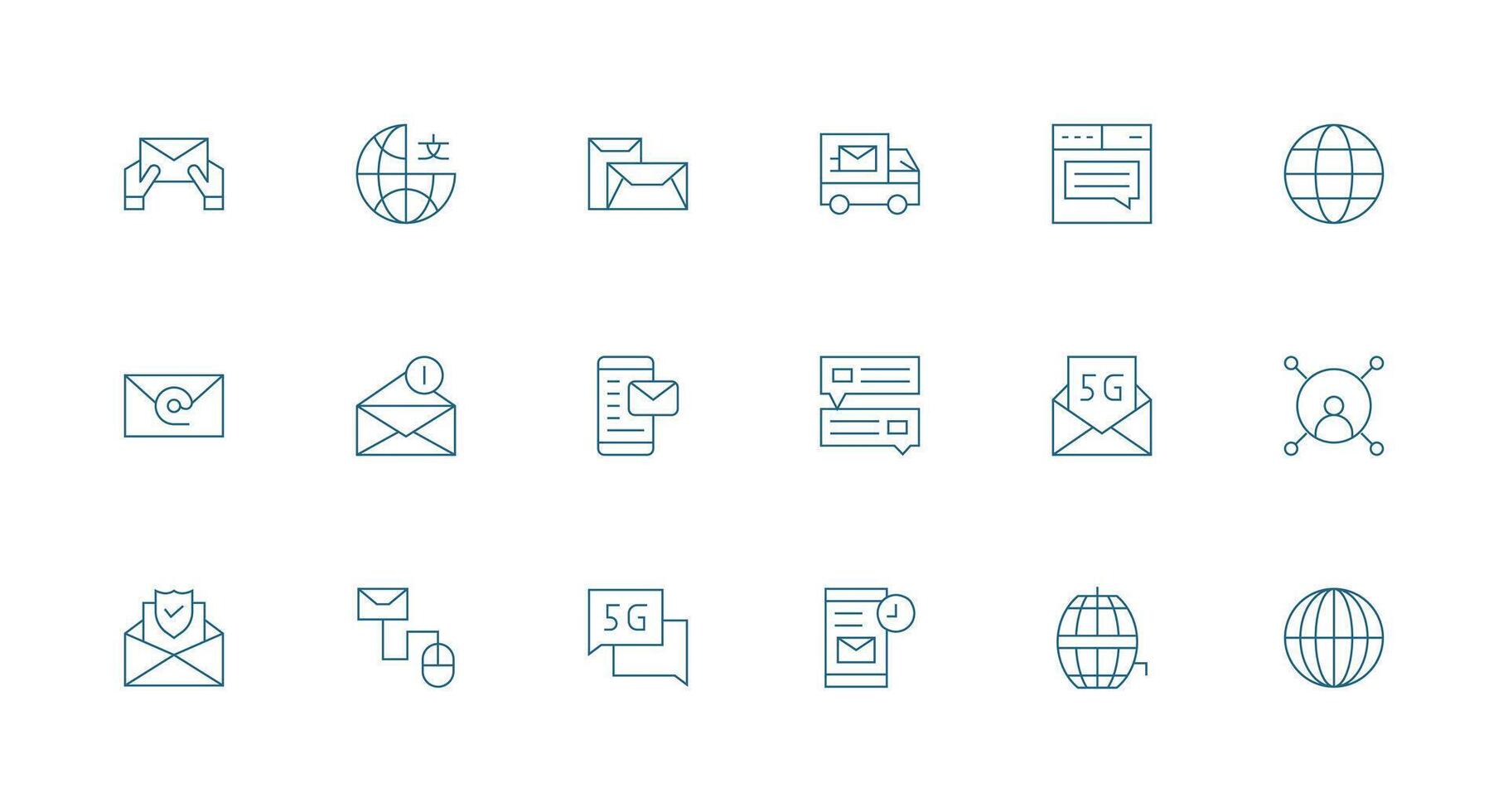 mínimo línea íconos desde digital comunicación conjunto con 18 vectores icono conjunto para web