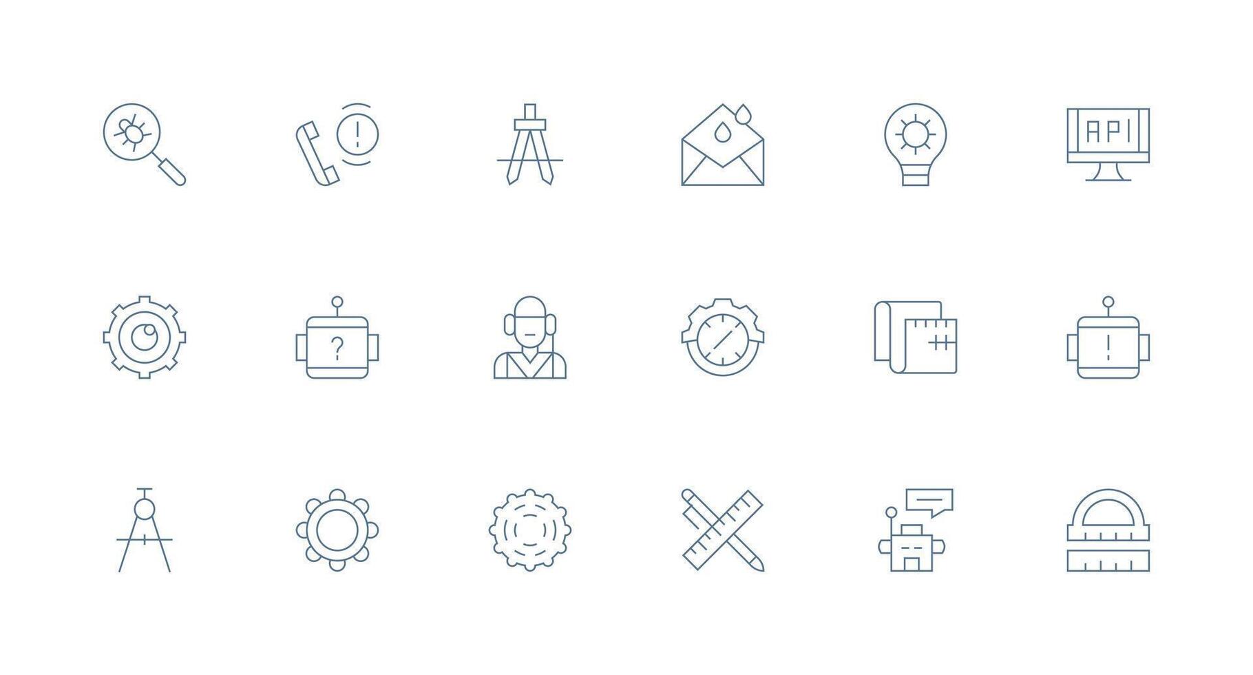 mínimo línea íconos desde técnico conjunto con 18 vectores reutilizable icono conjunto Vector Gratis