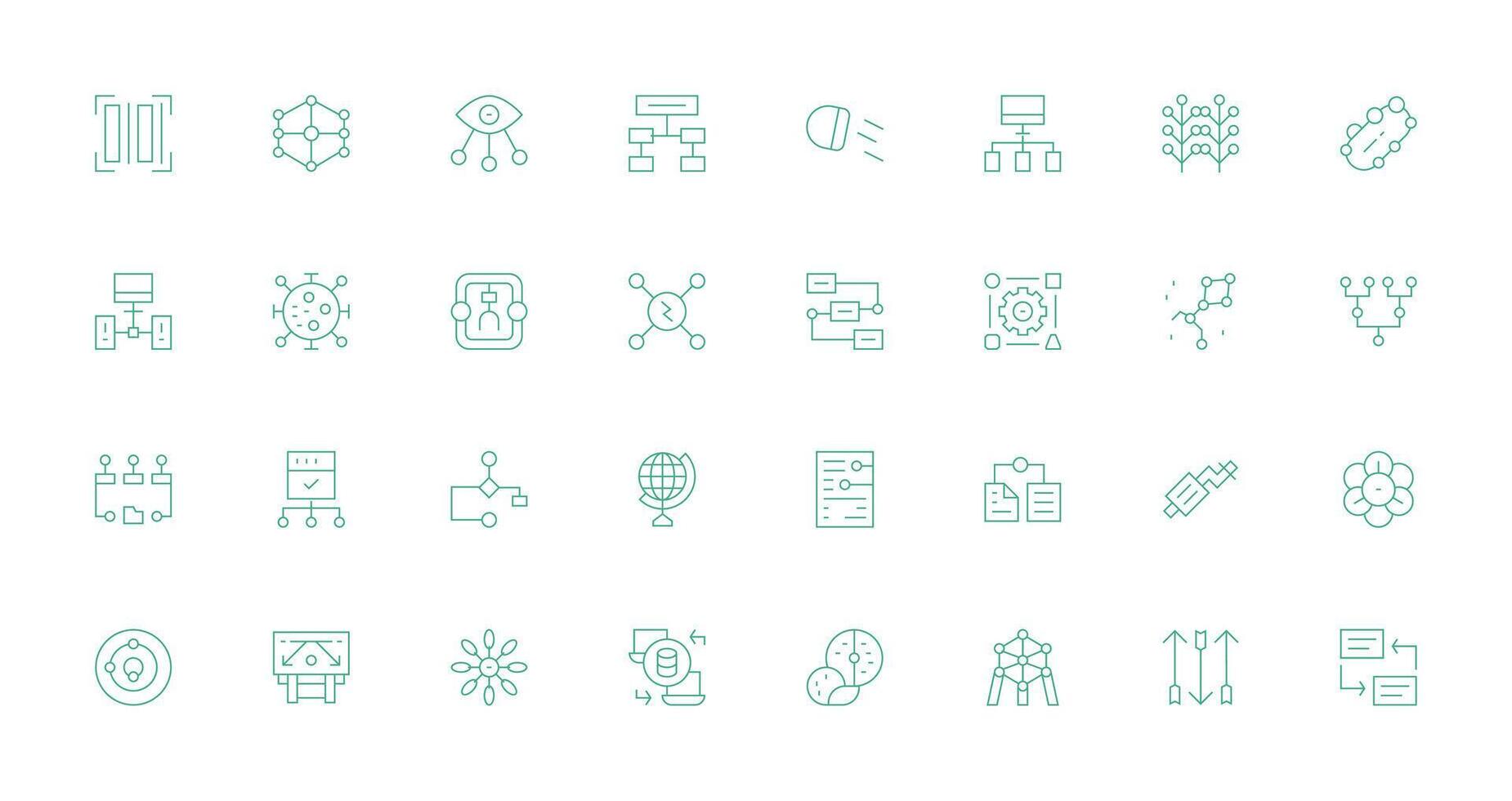 32 Delgado línea estilo íconos desde datos fluir colección web icono colección vector