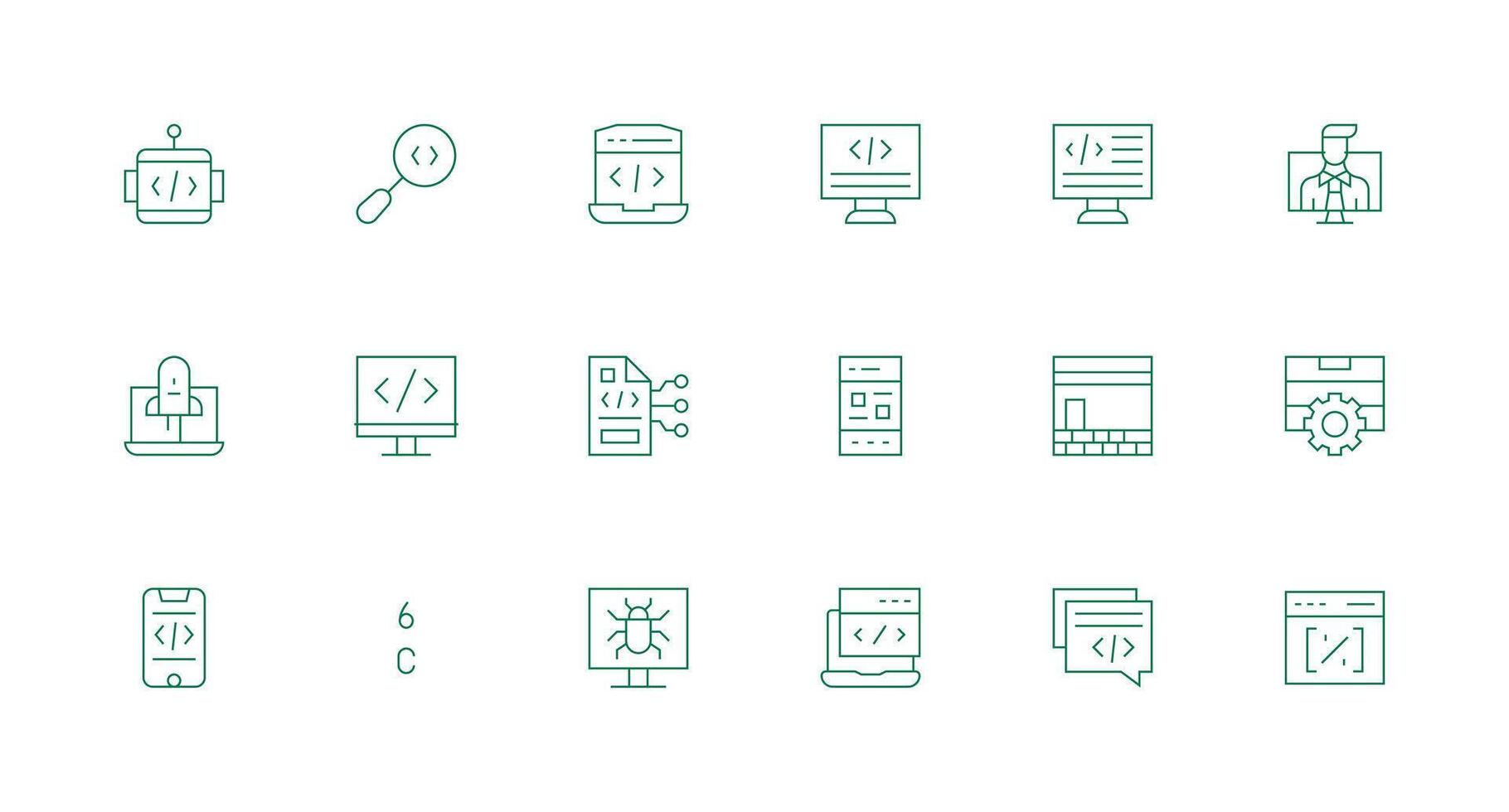 mínimo línea íconos desde codificación conjunto con 18 vectores claro y conciso icono conjunto colección