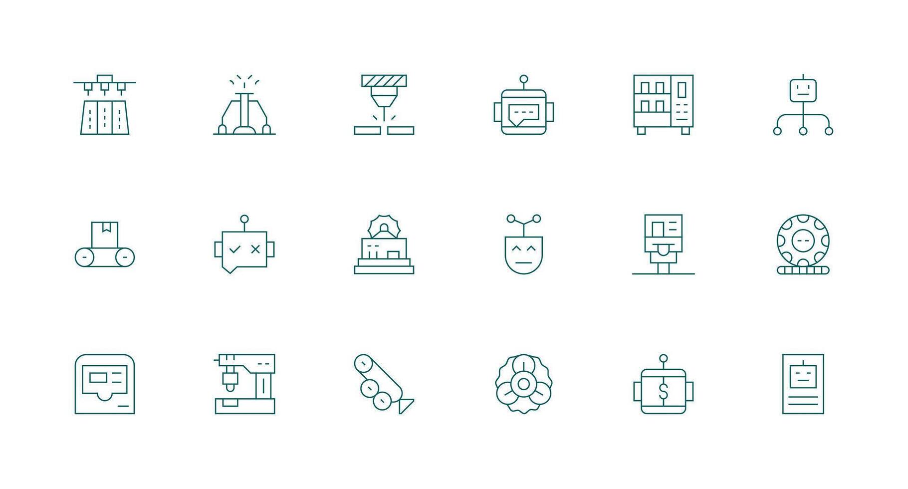 18 automatizado íconos en mínimo línea estético completamente editable icono conjunto para web vector