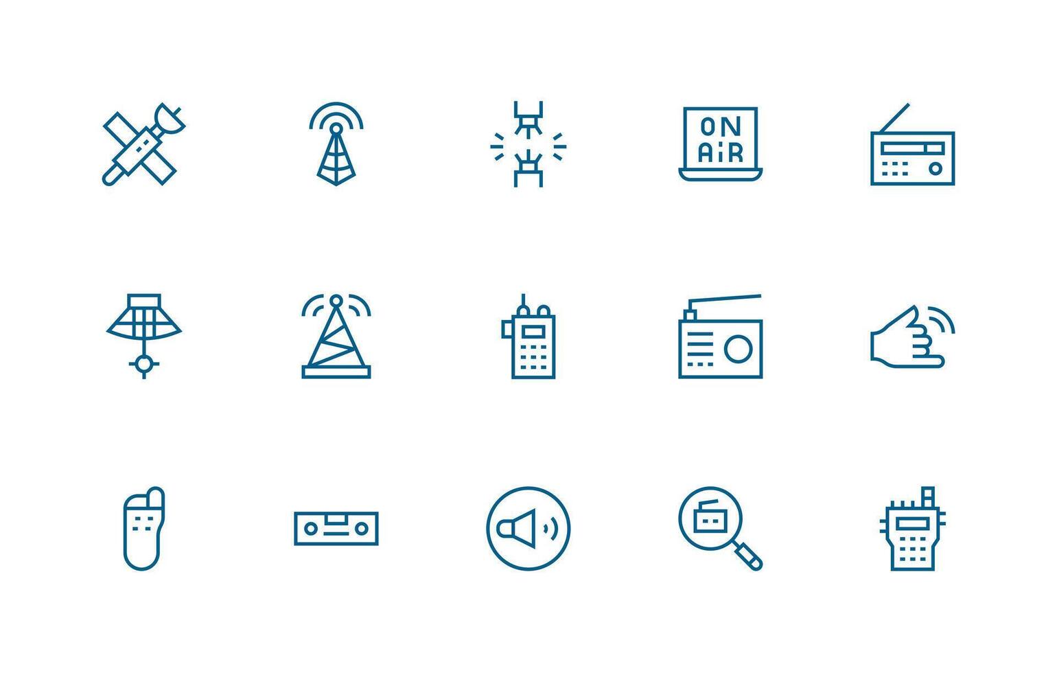 radio icono conjunto con 15 regular línea gráficos icono conjunto para web vector