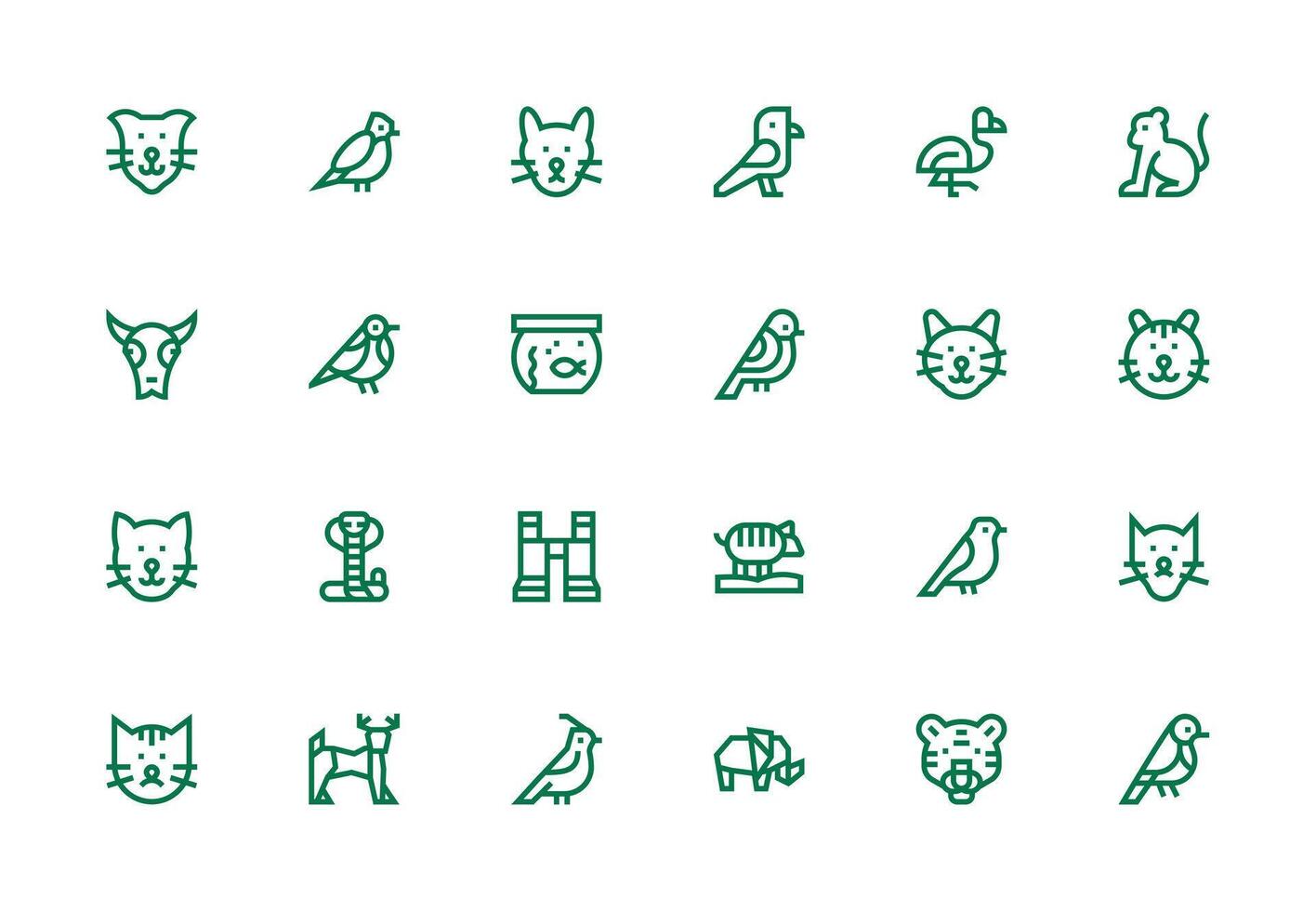 24 grueso línea línea estilo íconos desde zoo colección flexible icono sistema para web interfaces vector
