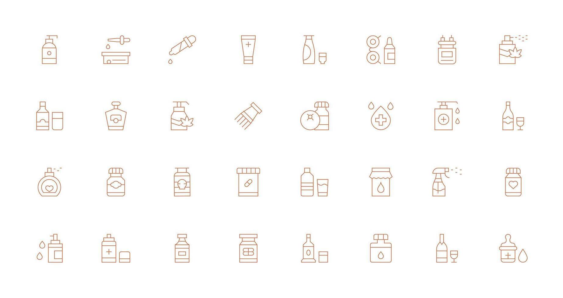 botella icono colección con 32 Delgado línea diseños rápido acceso íconos para ui desarrollo vector