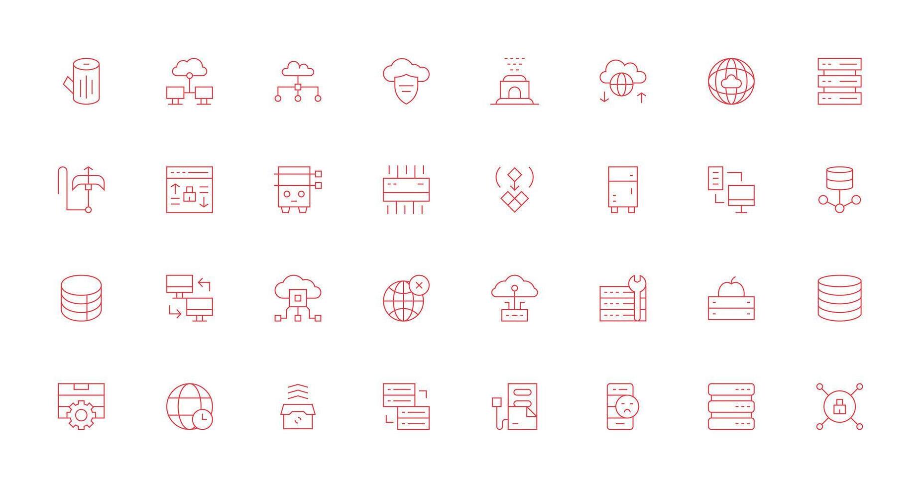 Delgado línea íconos desde servidor conjunto con 32 vectores icono conjunto
