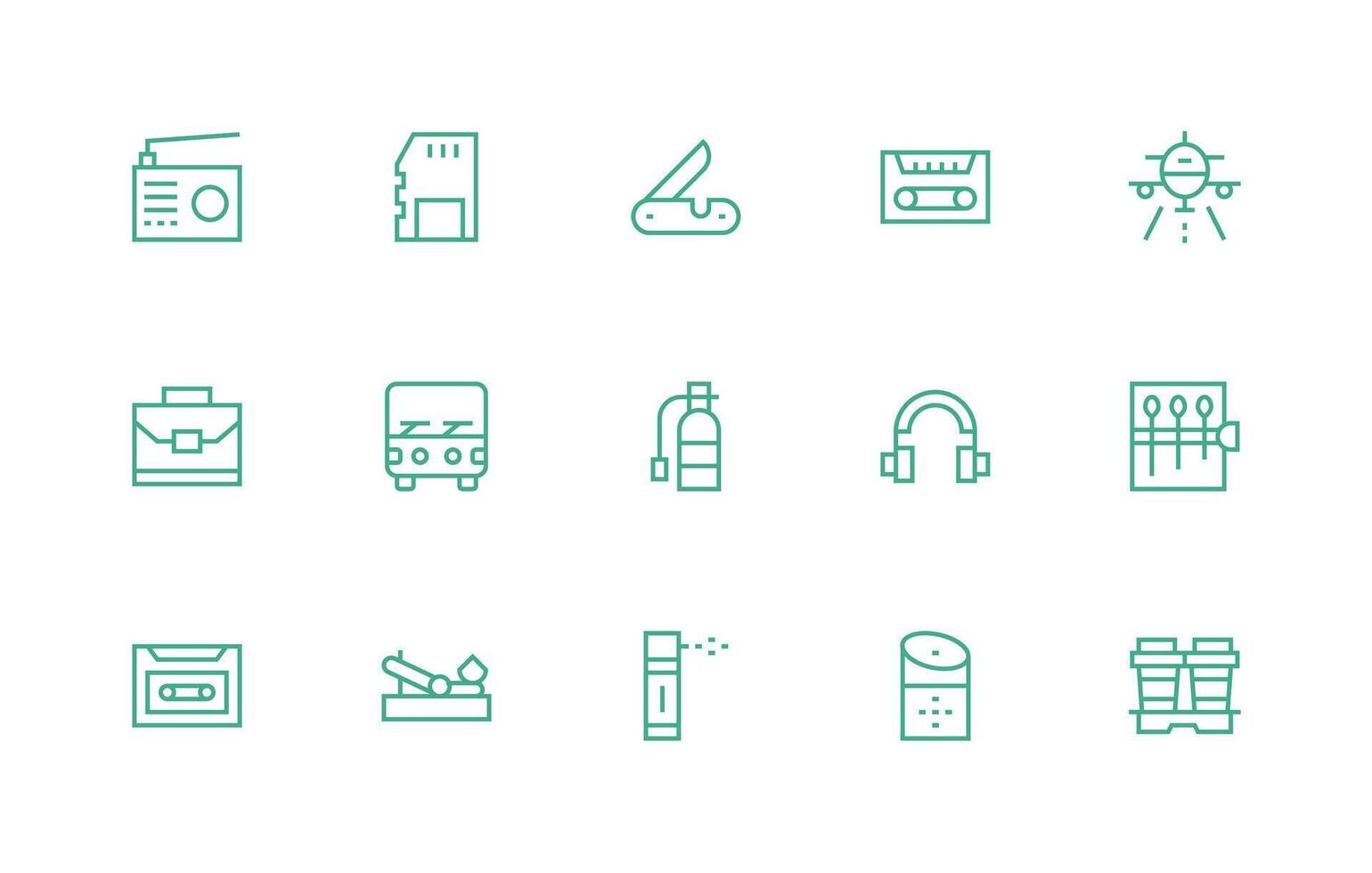 portátil presentando 15 íconos en regular línea diseño icono conjunto para proyectos vector