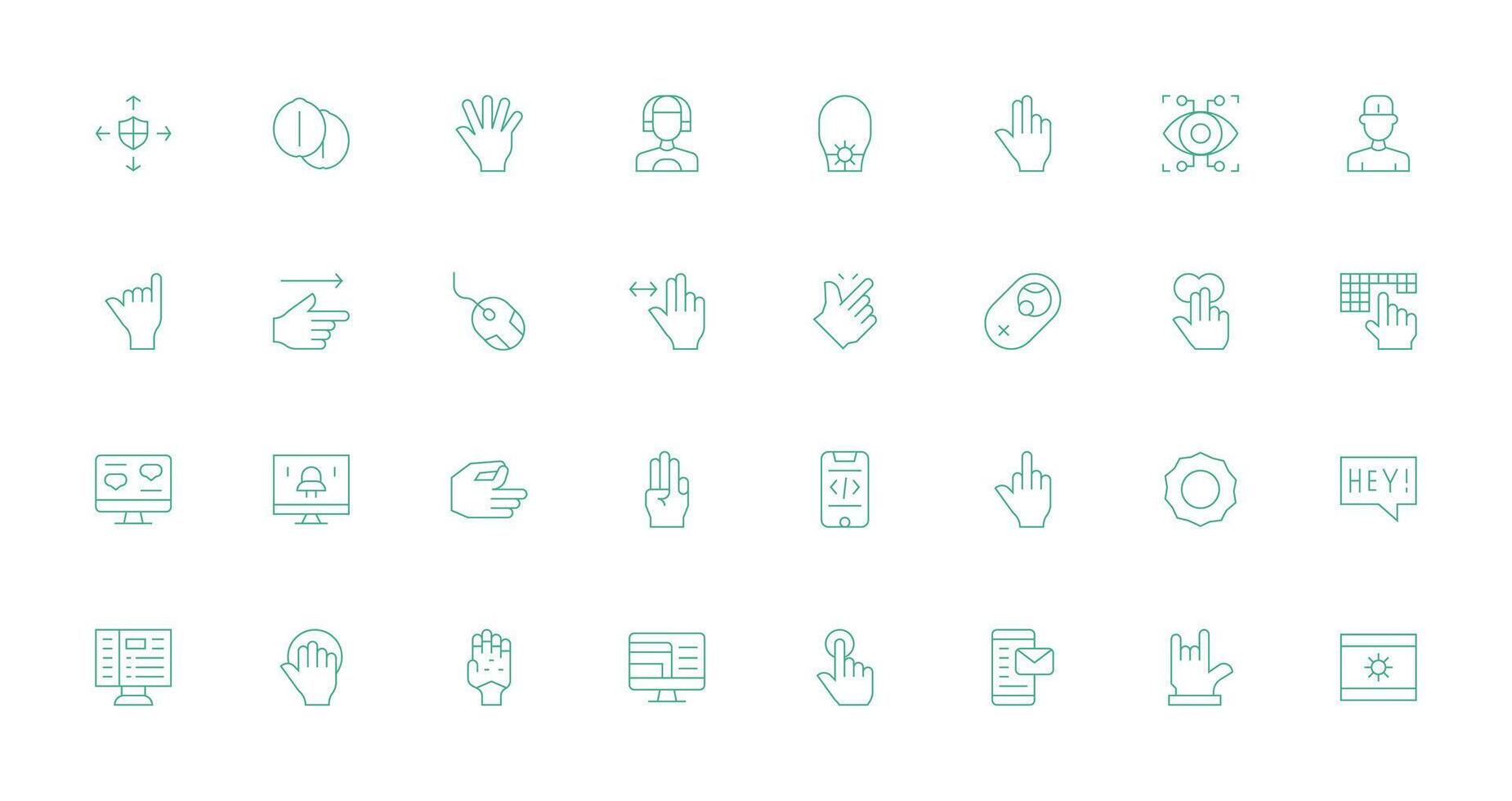 ui icono conjunto con 32 Delgado línea gráficos ui y ux enfocado icono colección vector
