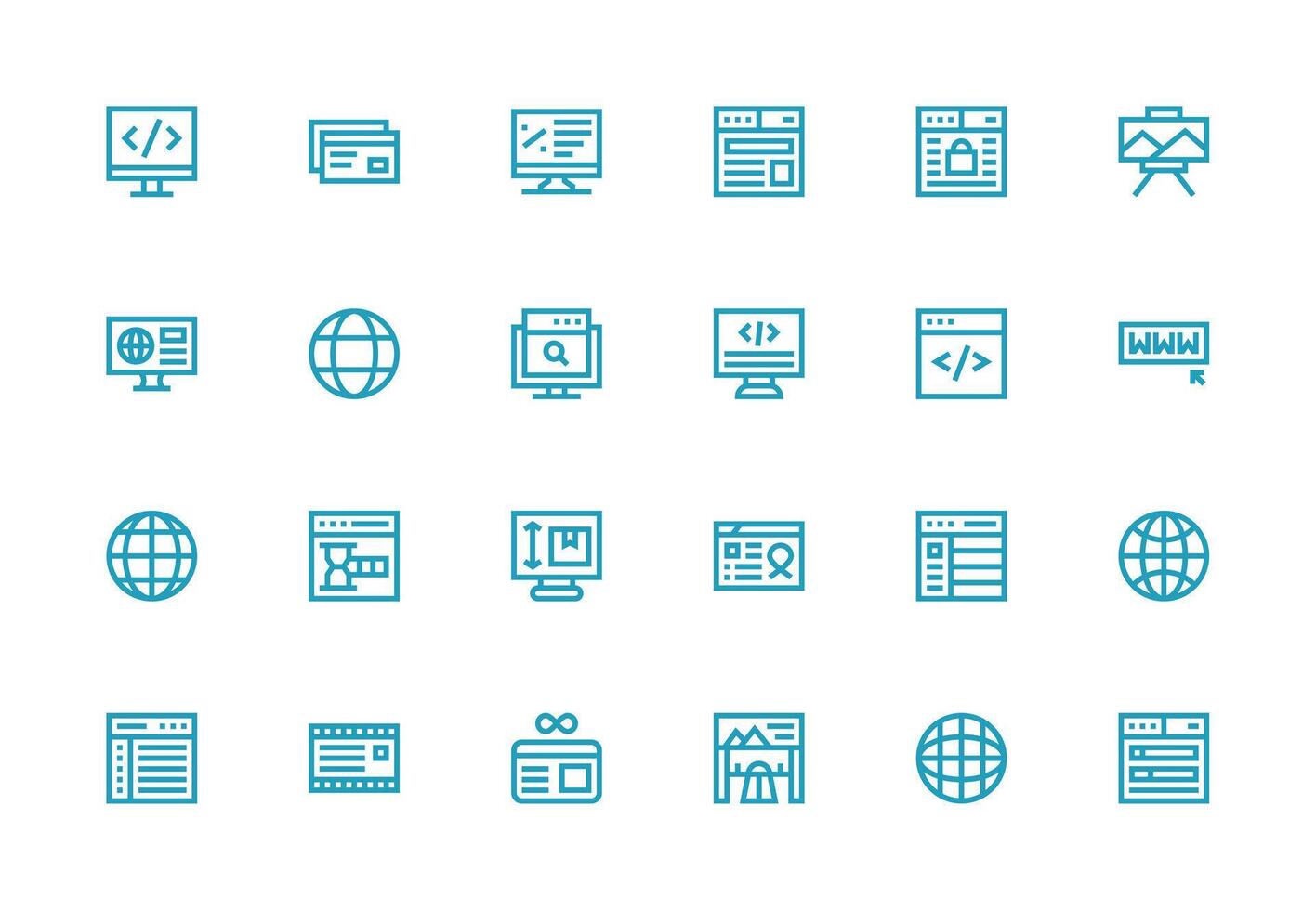 web página icono conjunto con 24 grueso línea línea gráficos reutilizable icono conjunto vector