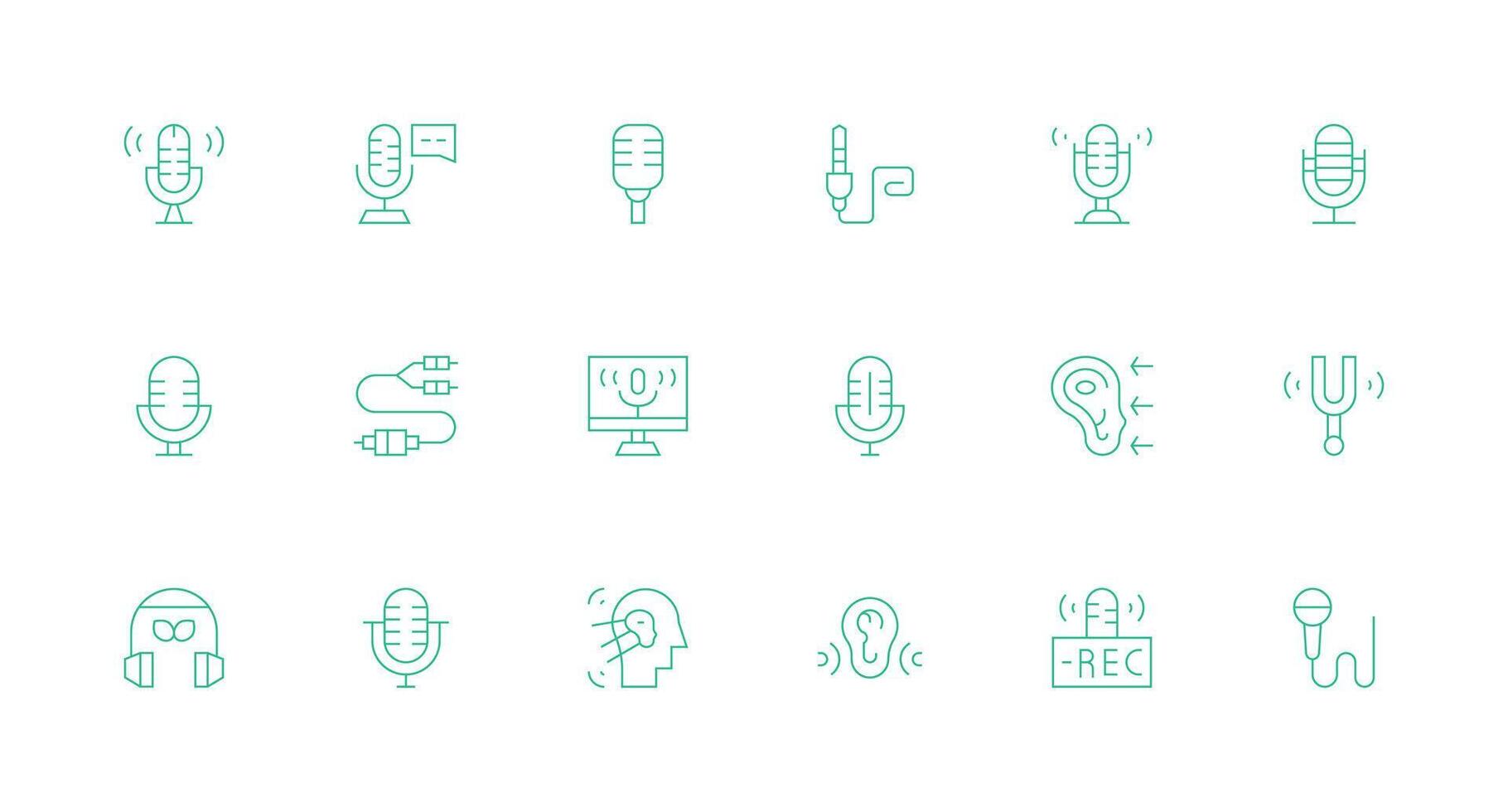 audio entrada diseño íconos presentando 18 en mínimo línea estilo flexible icono sistema para web interfaces vector
