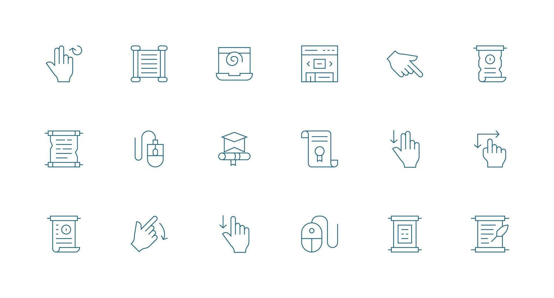 Desplazarse conjunto con 18 mínimo línea íconos rápido acceso íconos para ui desarrollo vector