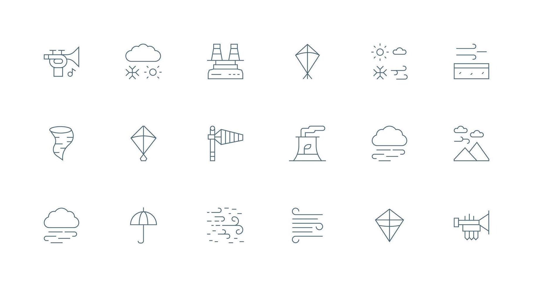 viento icono colección con 18 mínimo línea diseños completamente editable icono conjunto para web vector