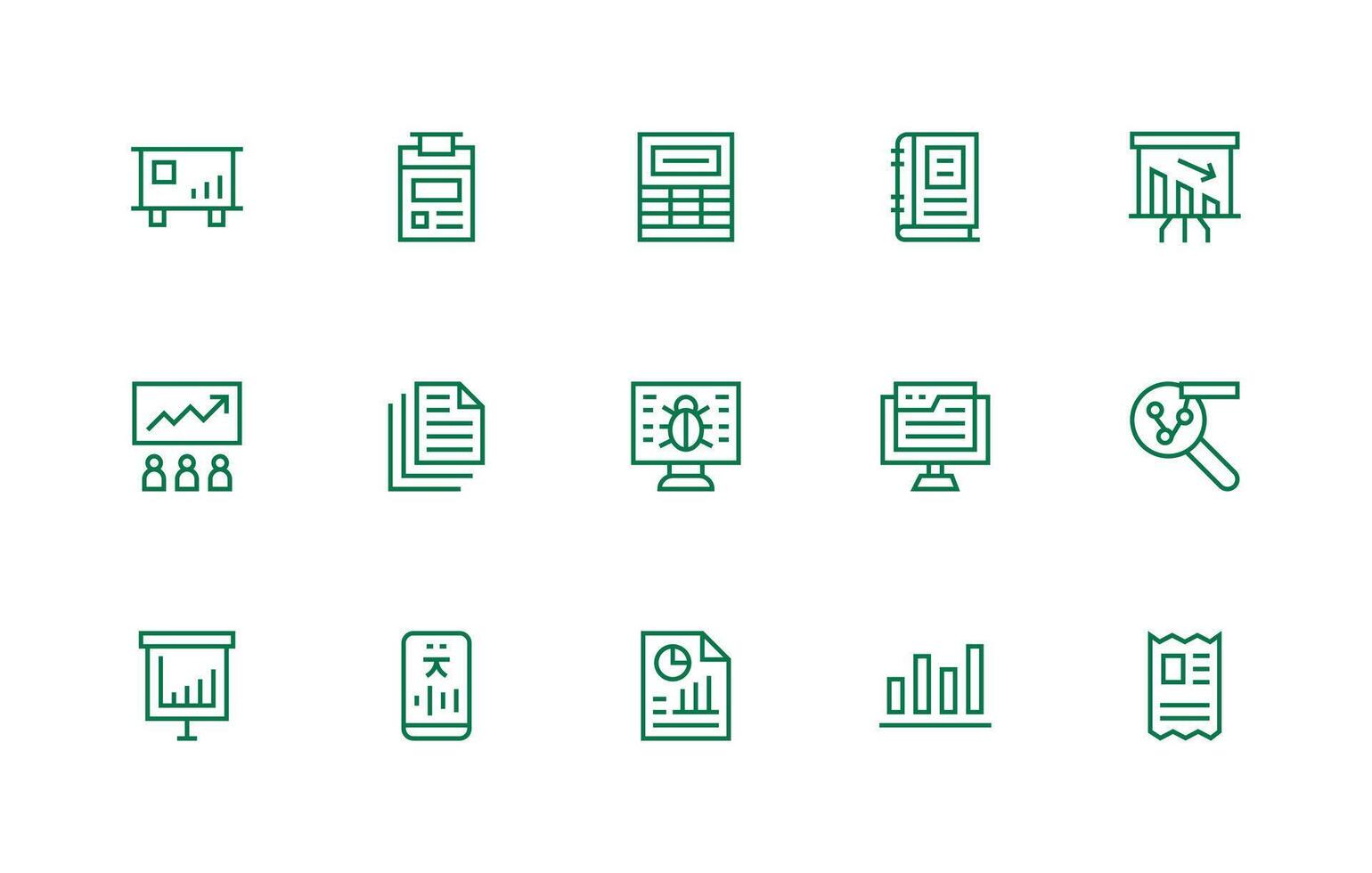 regular línea estilo reporte íconos con 15 vectores web y aplicación icono paquete colección Vector Gratis