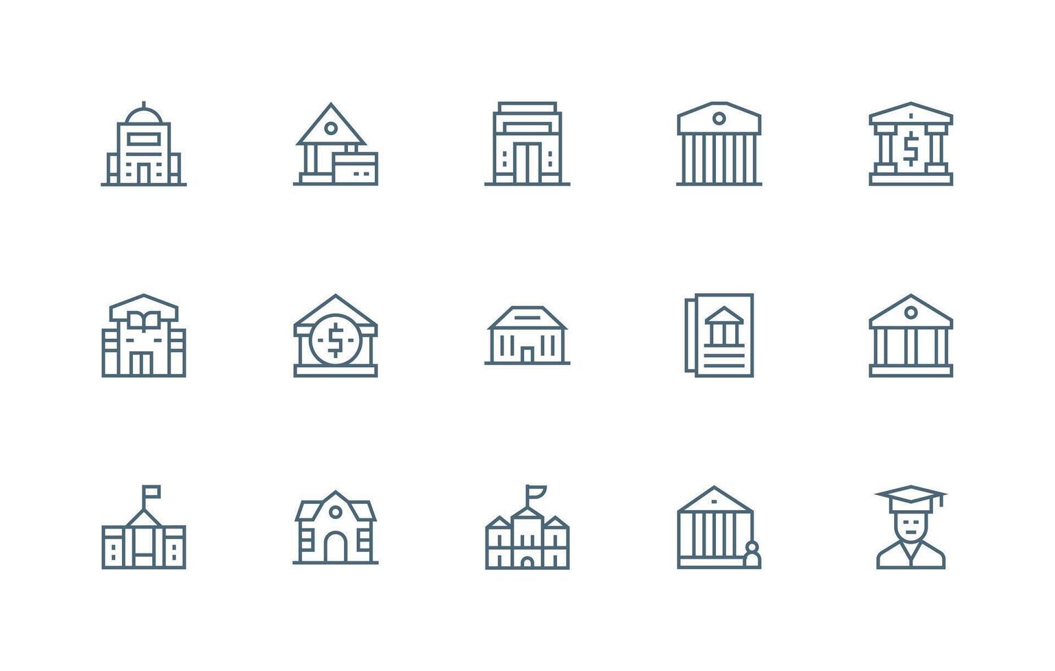 institución presentando 15 íconos en regular línea diseño de múltiples fines icono conjunto vector