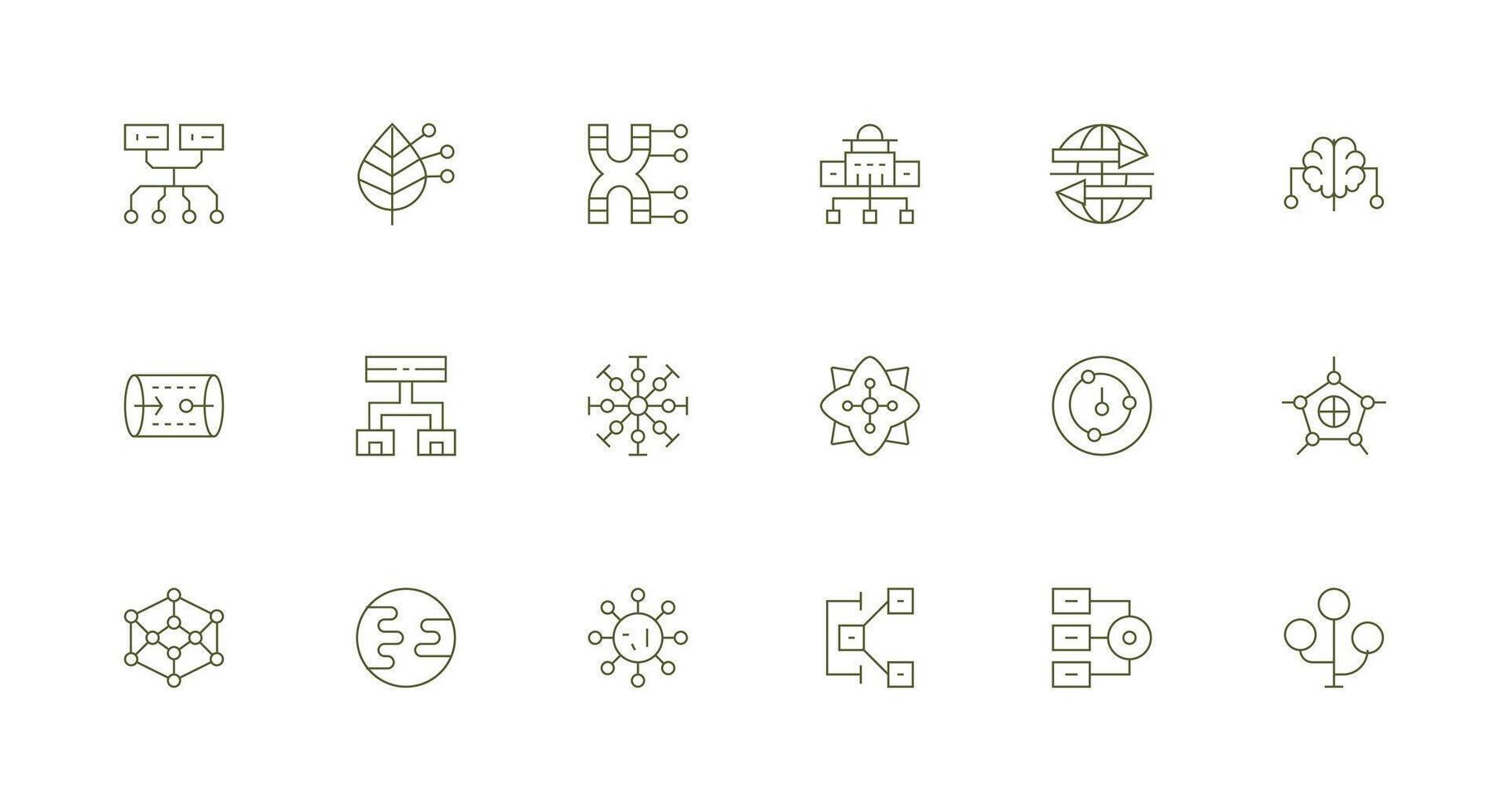 flujo de datos icono conjunto con 18 mínimo línea gráficos equilibrado icono conjunto para funcional diseño vector