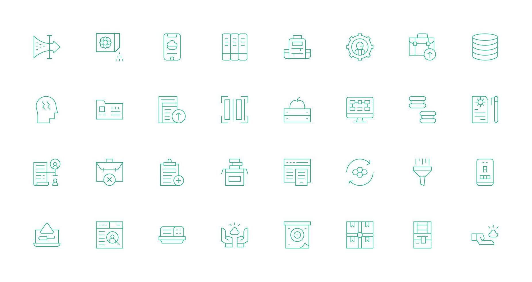 datos administración icono conjunto con 32 Delgado línea gráficos web y aplicación icono paquete colección vector