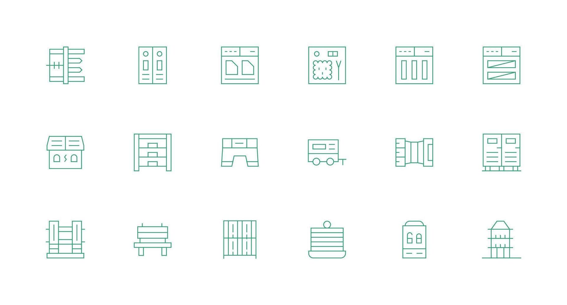 compartimiento icono conjunto con 18 mínimo línea gráficos completar icono haz para web diseño vector