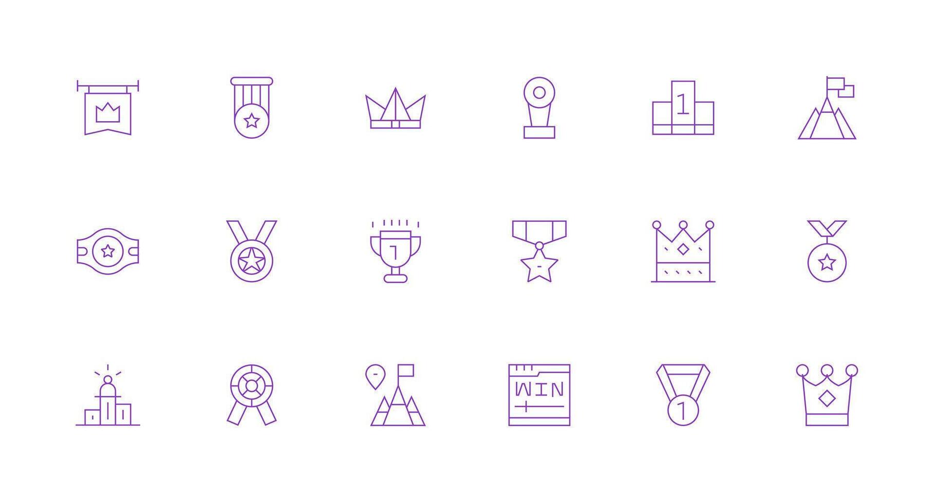 triunfo icono conjunto con 18 mínimo línea gráficos completar icono haz para web diseño vector