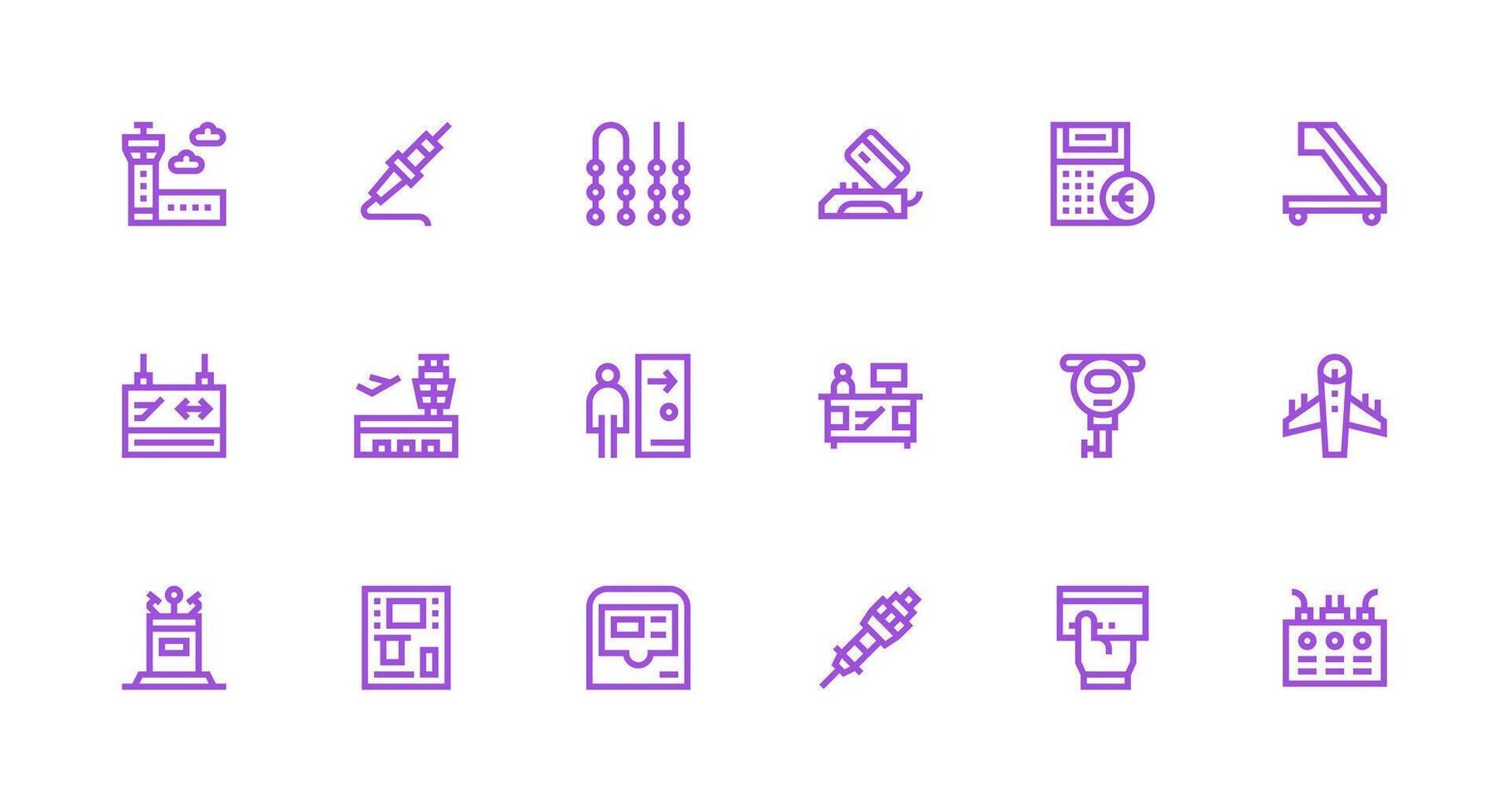 18 fuerte carrera línea estilo íconos desde terminal colección web y aplicación icono paquete colección vector