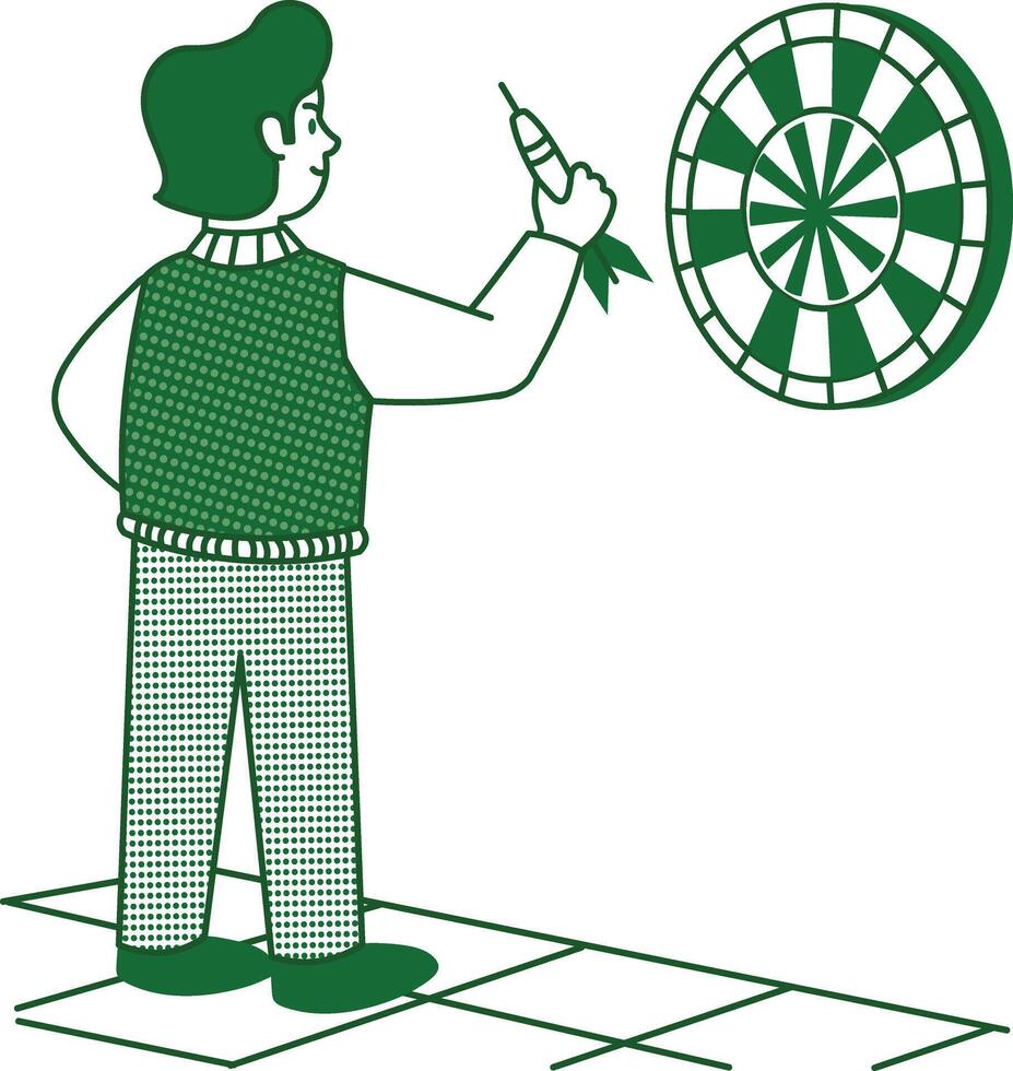 un garabatear estilo ilustración demostración un personaje jugando dardo juego Vector Pro