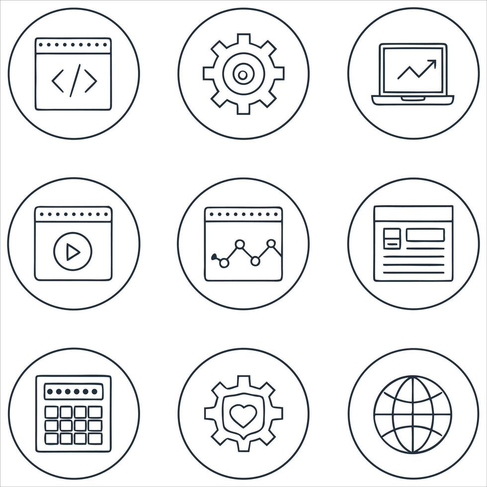 íconos computadora código engranaje grafico jugar botón calculadora globo Vector Pro
