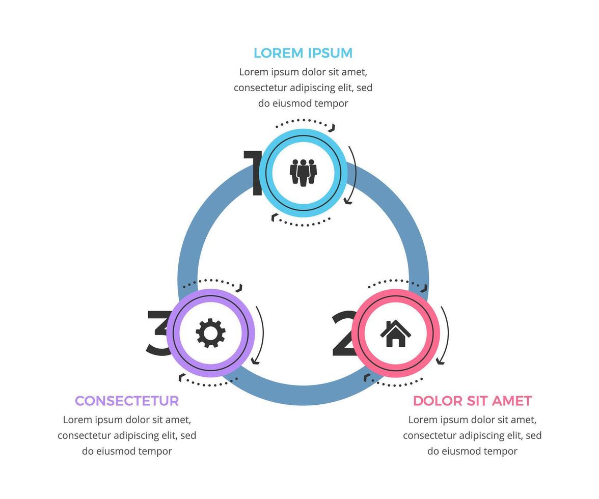 circulo diagrama modelo con Tres numerado elementos Vector Pro