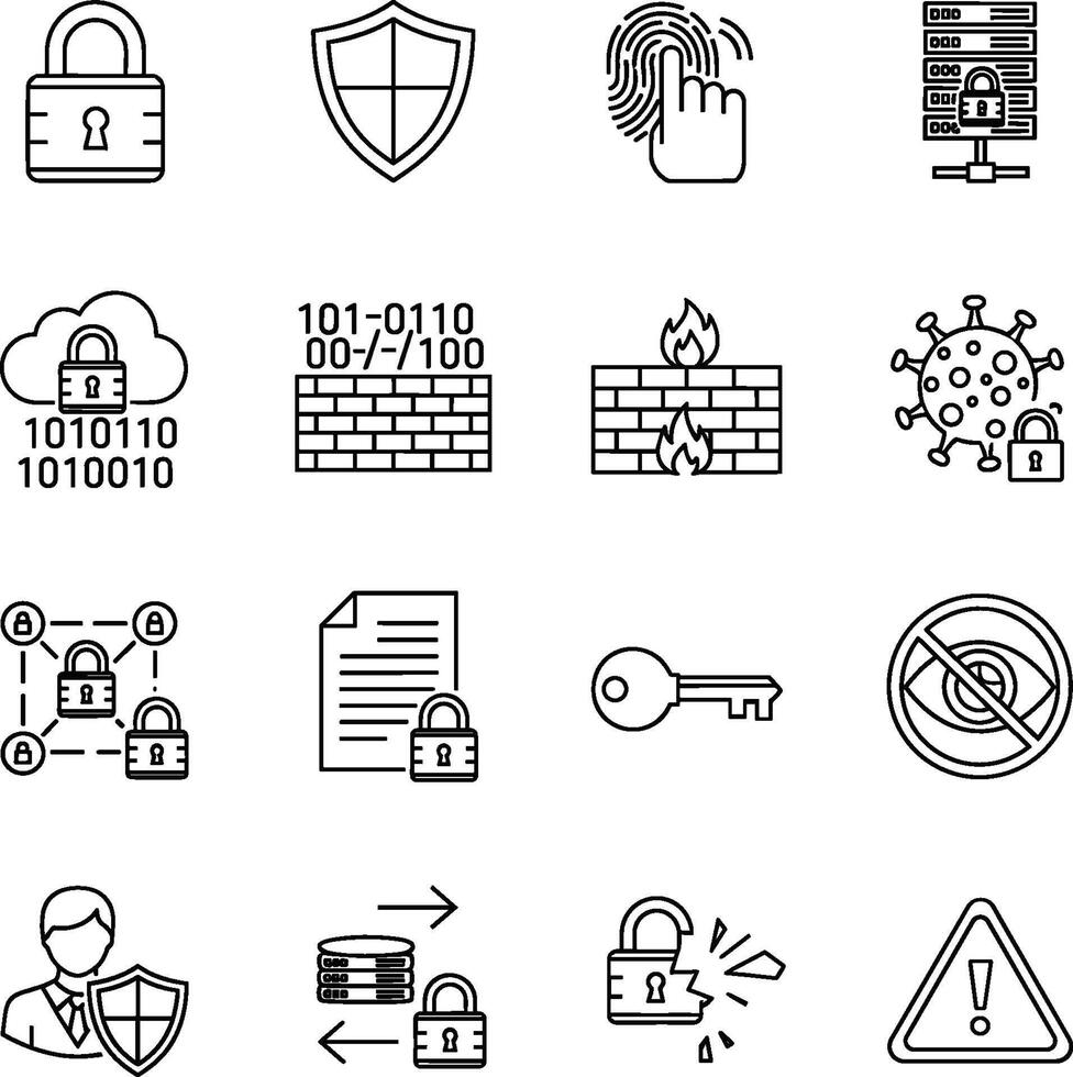 seguridad y datos la seguridad línea íconos representando computadora, Internet, y nube Vector Pro