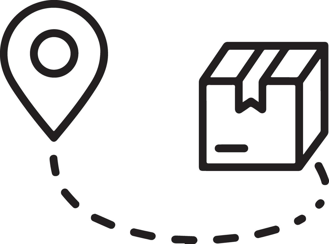 entrega ruta desde un ubicación alfiler a un Envío caja con rayado línea Vector Pro