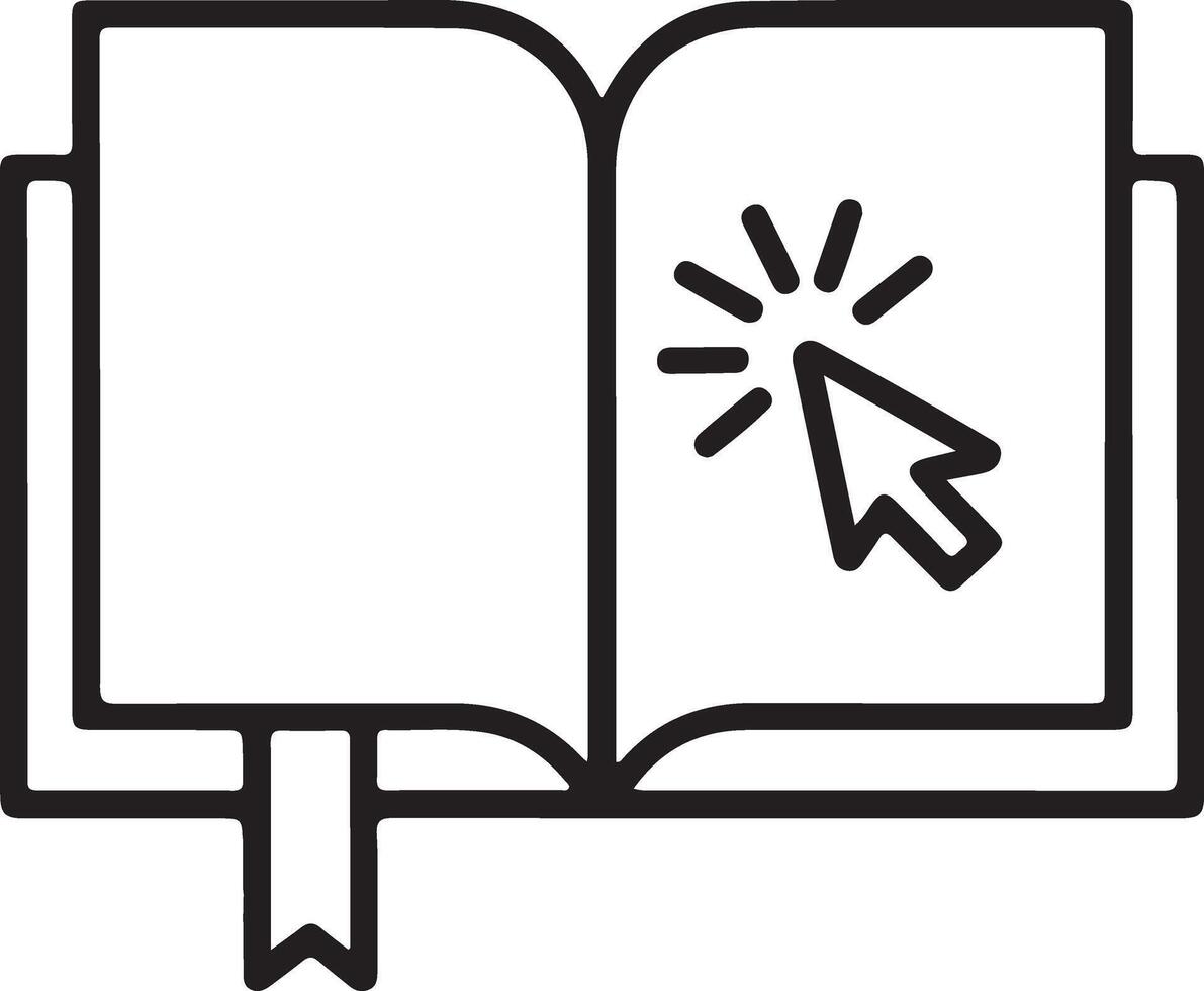 abierto libro icono con un cursor haciendo clic en un página representando en línea aprendizaje Vector Pro