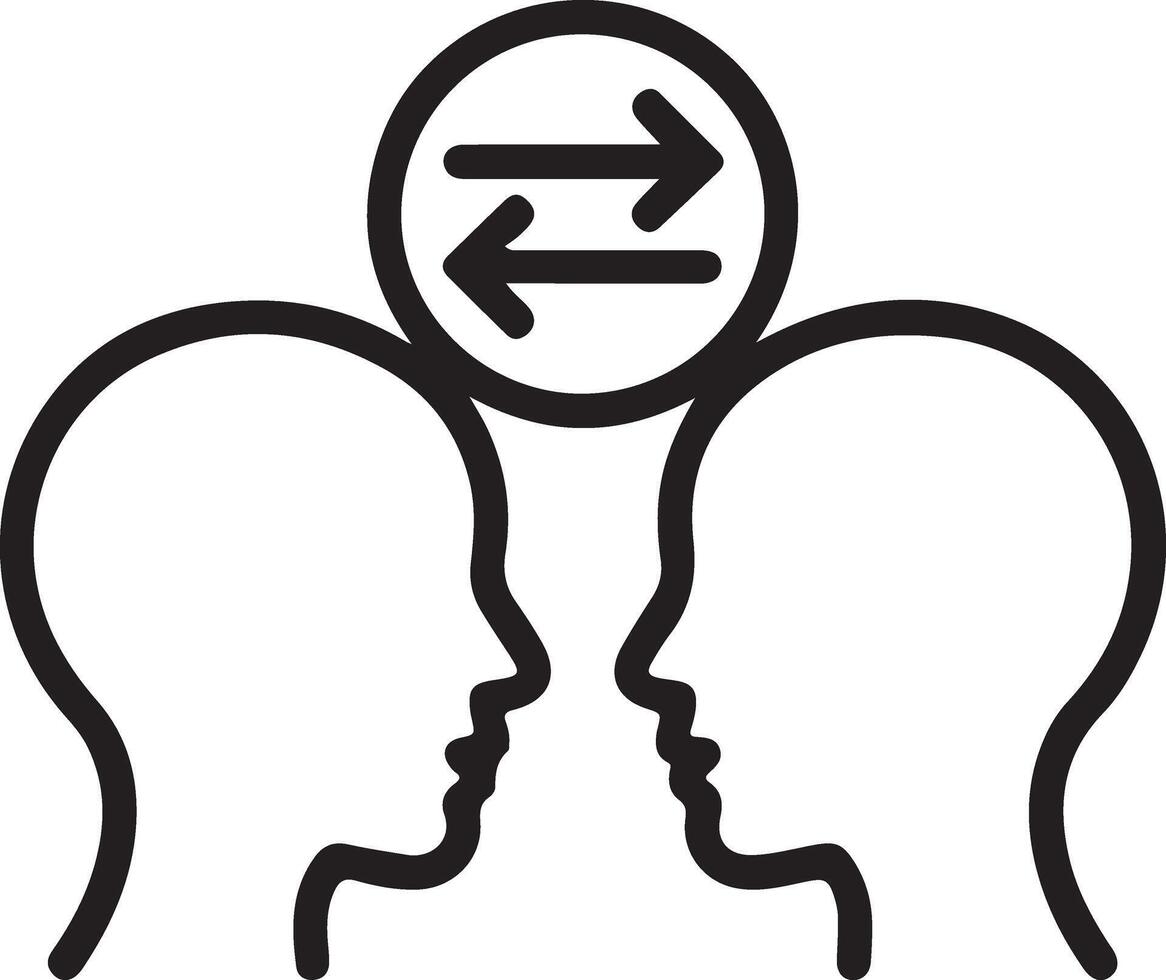 dos humano cabeza perfiles frente a cada otro con un circular flecha símbolo representando comunicación Vector Pro