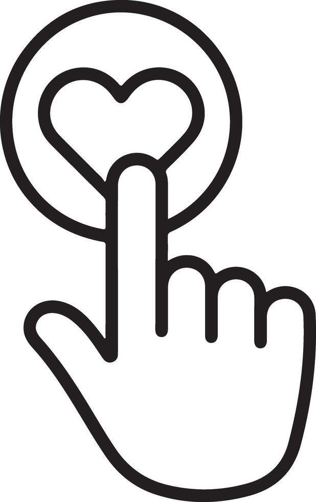 mano cursor haciendo clic un corazón icono en un circulo representando un me gusta o favorito acción Vector Pro