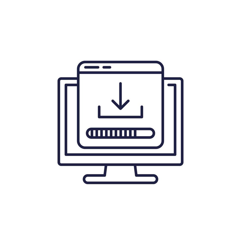 descargando archivos línea icono con un computadora y Progreso bar Vector Pro