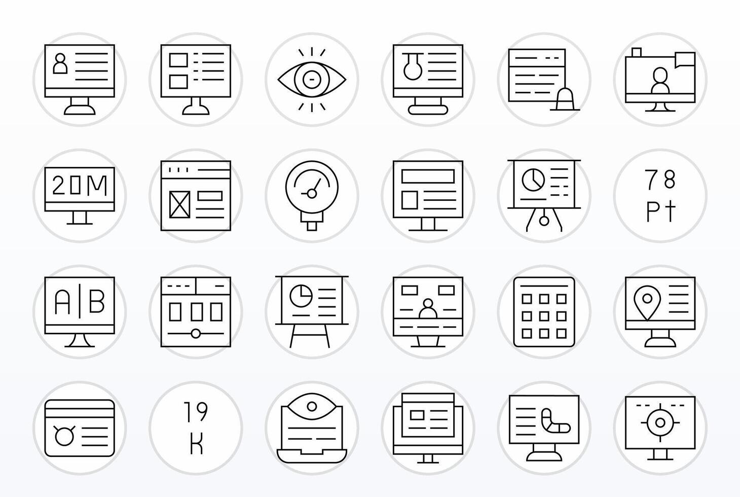 24 Delgado línea editable íconos a la medida para datos monitor 256x256 interfaz vector