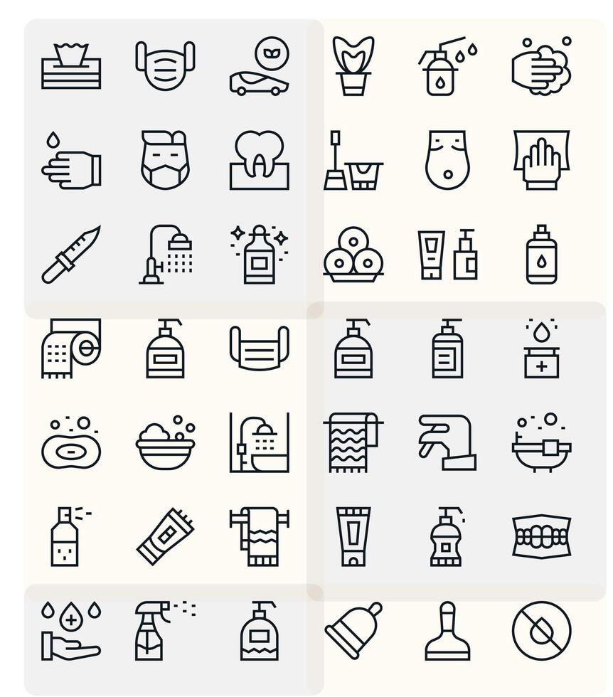 42 128x128 regular línea íconos optimizado para higiene píxel optimizado monitor vector