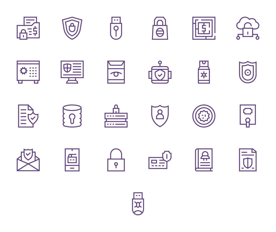 25 íconos para cifrado presentando alto resolución píxel optimizado regular línea gráficos vector