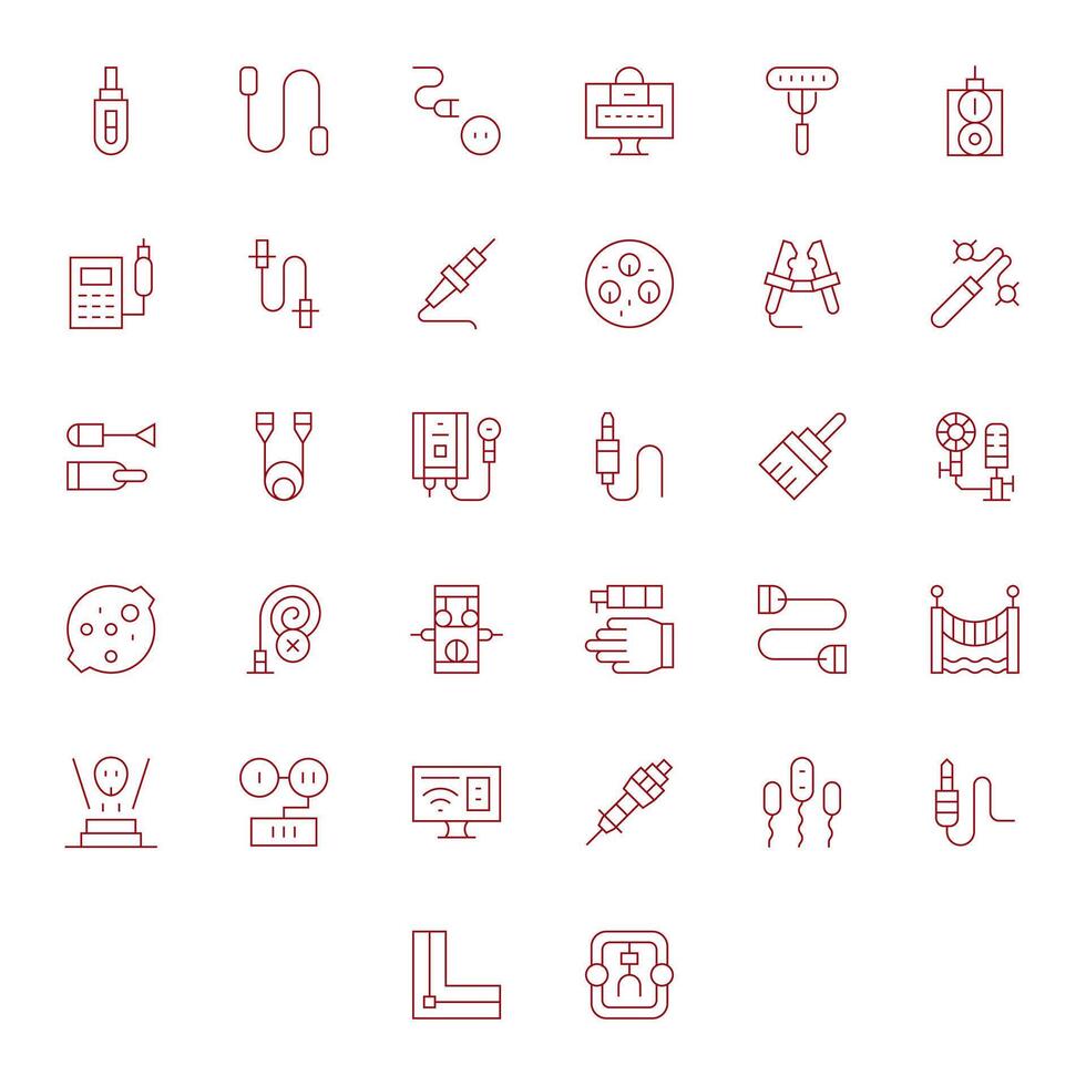32 íconos para cable optimizado en píxel optimizado alto resolución Delgado línea resolución Vector Gratis