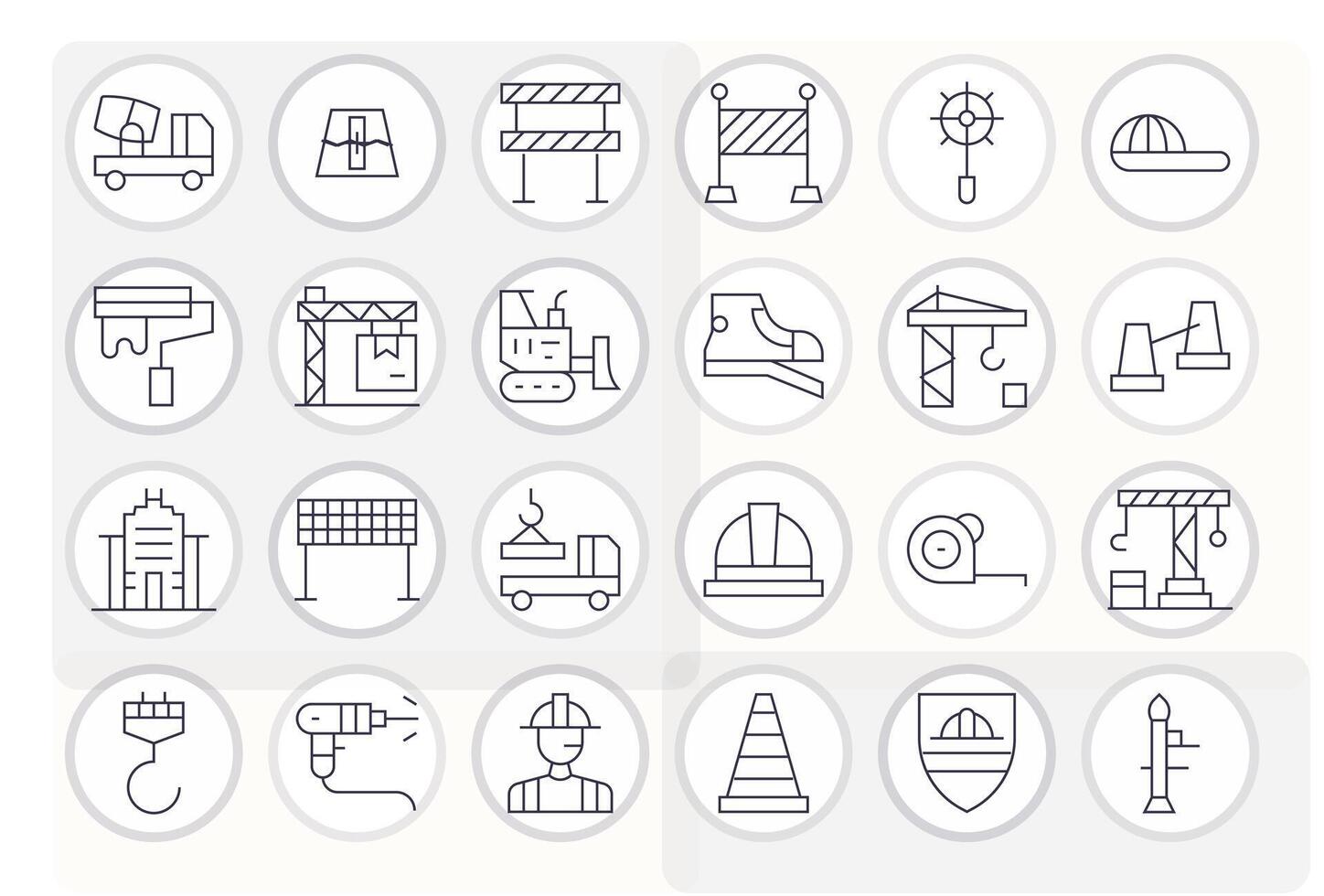 24 íconos para construcción sitio optimizado en píxel optimizado 256x256 Delgado línea resolución vector