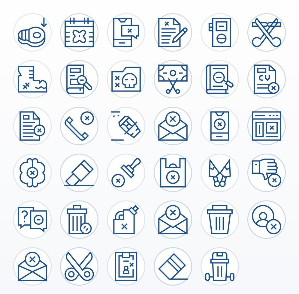 Eliminar exclusivo conjunto presentando 35 regular línea editable alto resolución íconos vector