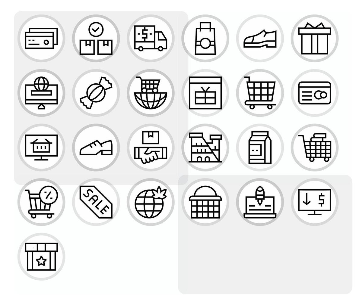 comercio electrónico profesional conjunto con 25 regular línea píxel optimizado 256x256 íconos vector