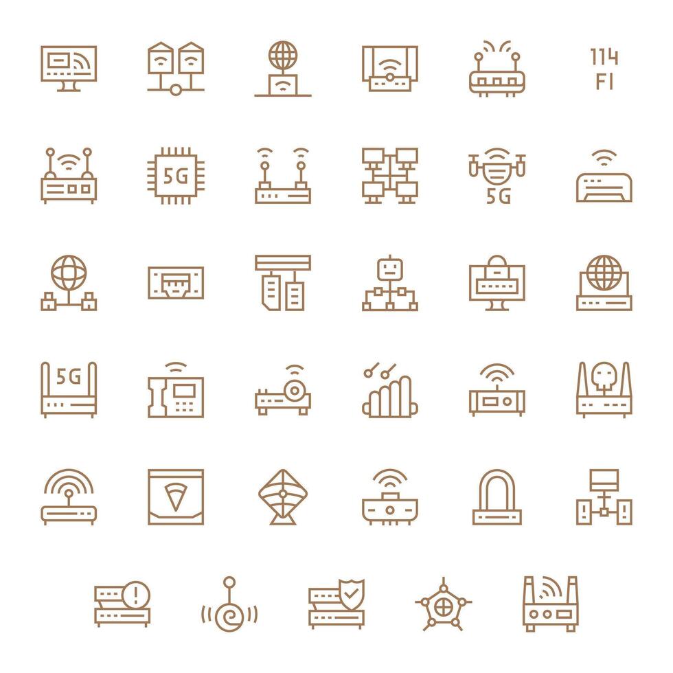 35 regular línea íconos para enrutador en crujiente alto resolución monitor Perfecto resolución vector