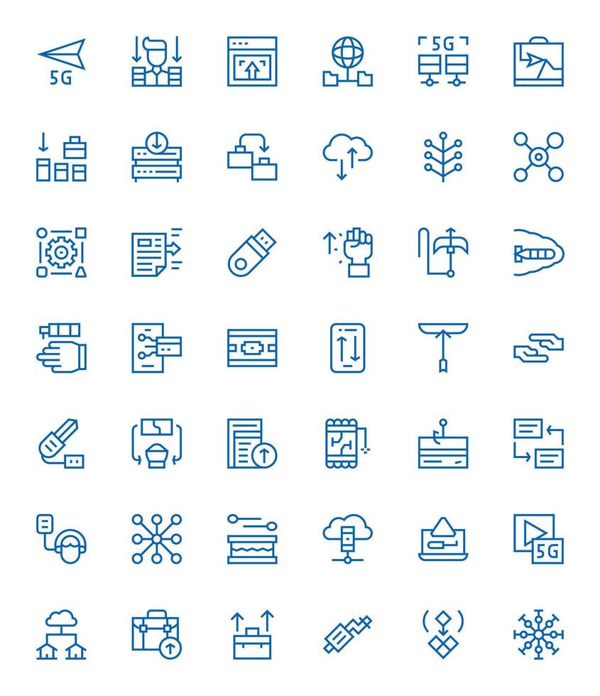 42 regular línea íconos para datos transferir en crujiente 128x128 píxel Perfecto resolución Vector Gratis