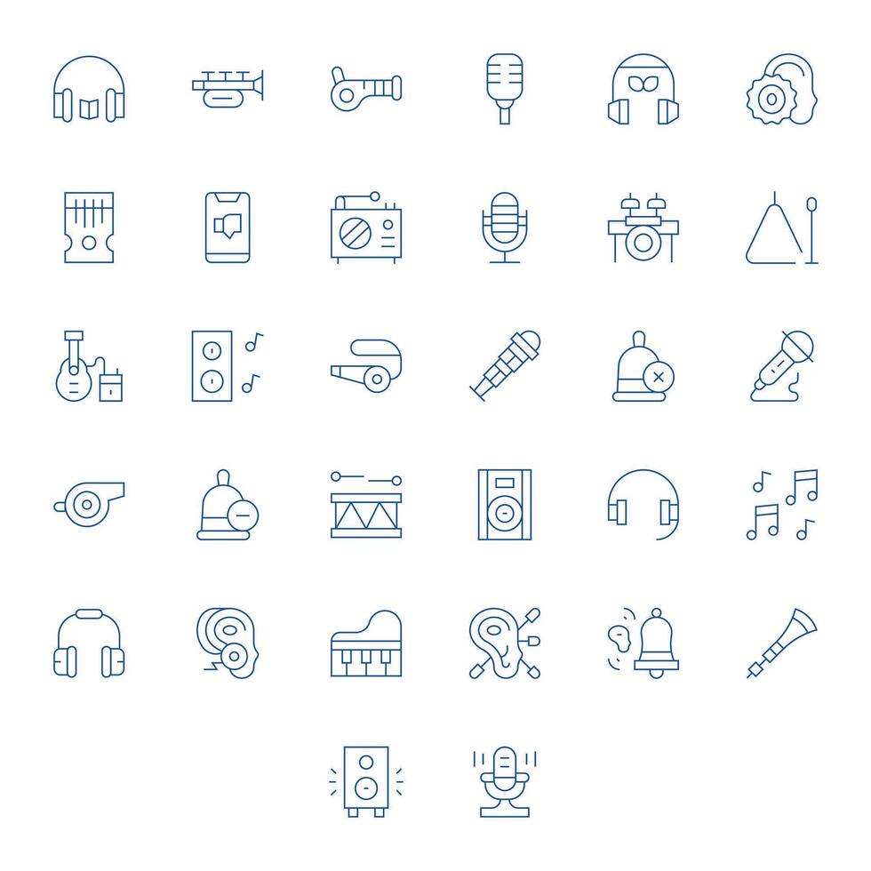 sonido escalable conjunto presentando 32 editable Delgado línea alto resolución íconos Vector Gratis