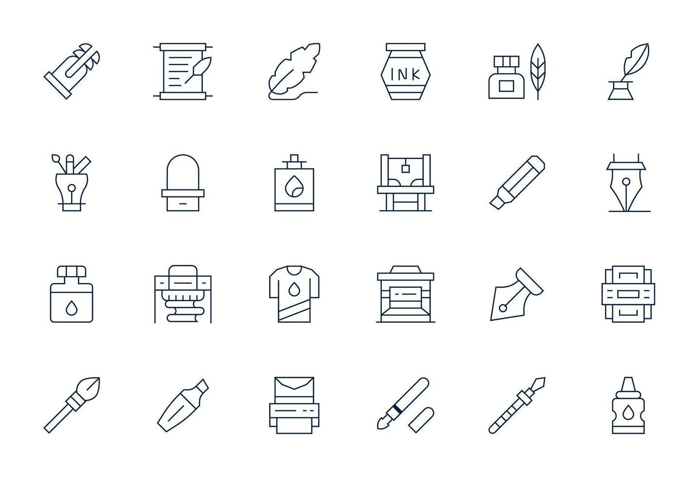 Delgado línea píxel alineado íconos desde tinta conjunto con 24 alto resolución íconos vector